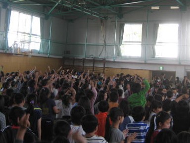 最後に、離任された先生方が体育館を出られても、体育館内の子どもたちはいつまでも手を振り続けていました。