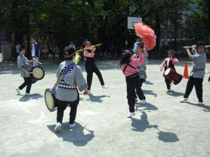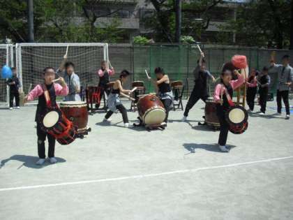 ひがしの学校運営委員会が応援している「こざくら」のふれ太鼓から、東深沢・等々力コミュニティー主催の「第21回フリーマーケット」が始まりました。コミュニティーの皆さんには、ひがしの子どもたちも授業や地域行事でお世話になっています。