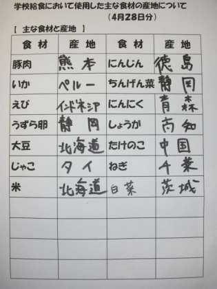 4/28 今日の給食