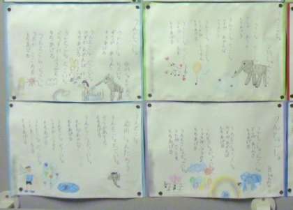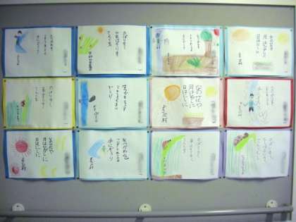 2年生は、教科「日本語」で取り組んだ俳句を視写し、絵にも表しました。