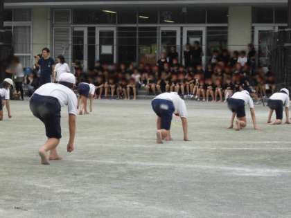 運動会前の練習としては、今日が実質最後です。6校時、6年生の組体操の練習を5年生がじっと見つめていました。先輩である最高学年の6年生の練習を見て、5年生はどんなことを感じたのでしょうか? どんなことを考えたのでしょうか?