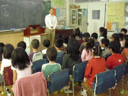 子どもたちは目を輝かせ、真剣にお話に耳を傾けていました。真剣な目をお届けできないのが残念です。 深沢図書館の皆様ありがとうございました。(2年 西村)