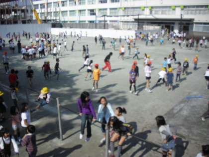 プレハブ校舎も取り壊しが進み、11月からは、校庭改修工事です。今日の校庭使用後は、2月まで校庭が使えません。中休みは、全児童が校庭で外遊びです。もちろん、先生方もみんなん外で子どもたちと遊びました。しばらくの間、この光景が見られないのはさびしいです。学校で外遊びができない分、帰宅後に公園等で元気に遊んでほしいです。