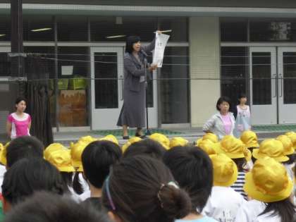 校長先生のお話は、運動会で子どもたちがとてもよく頑張ったことと、「人格の完成をめざして:責任」についてでした。家のお手伝いや、係や当番の活動、規則やルールを守ること、約束したことを最後まで頑張ることが、責任ある行動につながります。今月は、特に意識してほしいと思います。