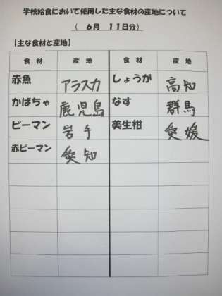 6/11 今日の給食