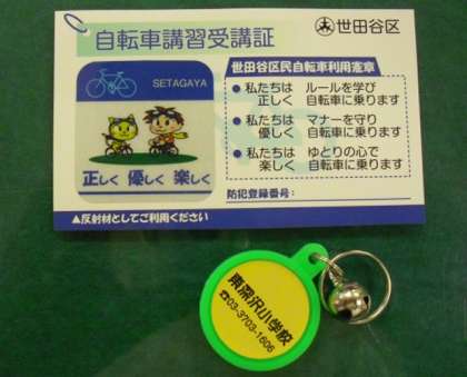 3年生のお友達は、最後に教室で「自転車講習受講証」とキーホルダーをいただきました。これで、一人でも自転車に乗ることができます。必ずヘルメットをかぶり、交通ルールを守って、楽しく安全に自転車に乗りましょう。保護者の皆さん、子どもたちへの指導をよろしくお願いします。