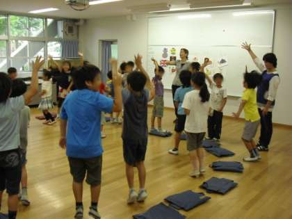 2年生は5時間、外国人の先生やひがしの英語ボランティアの方々、担任の先生と英語活動に楽しみながら取り組んでいきます。
