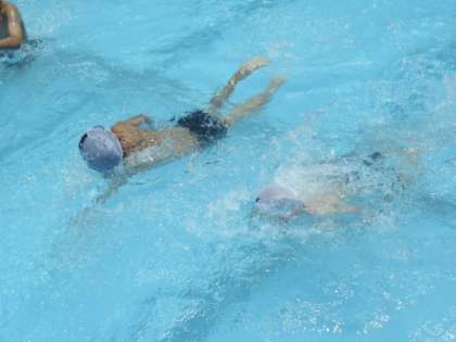 3・4校時は3年生の初泳ぎです。