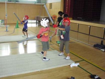 「ドッチビーターゲット」「サーキットラン」「ストラックアウト」「パターゴルフ」「缶バランス」「スポーツチャンバラ」「ゴキブリたたき」が校庭や体育館で行われました。おやじの会「スポゲー」です。