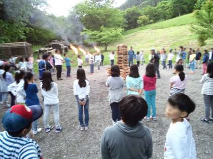 「遠き山に日は落ちて」を歌ったあと、いよいよ点火です!燃えろよ燃えろを高らかに歌いました!