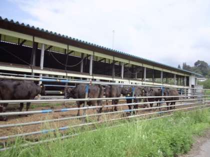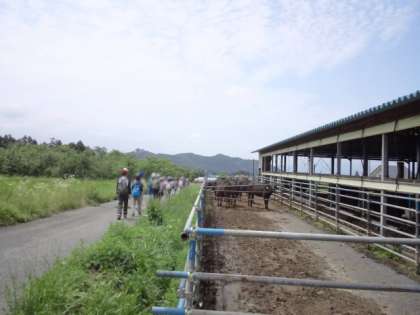 関りんご園を過ぎると、牛舎がありました。普段、都内では見られない風景でしたが、子どもたちは牛を刺激しないように静かに通りました。
