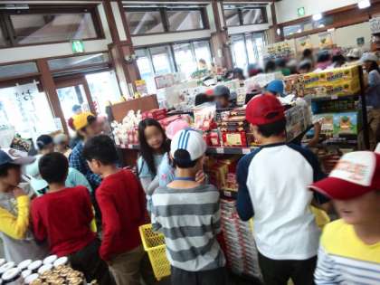 家で待っている家族のことを考えているのでしょうか? 子どもたちはいろいろなお土産を、田園プラザで買っていました。