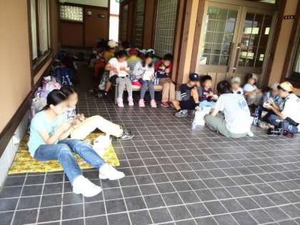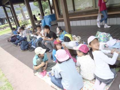 宿舎から届いたお弁当を、みんなで楽しく食べました!