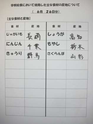 6/26 今日の給食
