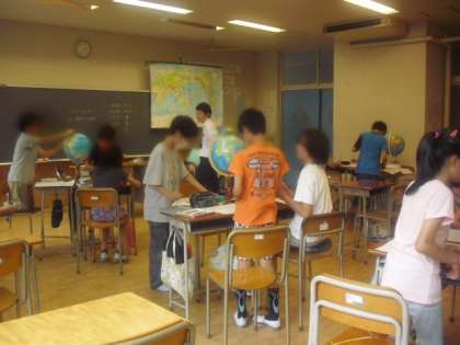 後半は、事前に決めていた9つの教科に分かれ授業体験をさせていただきました(『国語〜文法〜』『社会〜世界のすがた〜』『数学〜魔法の筆算〜』『理科〜身のまわりの水溶液〜』『英語〜歌と絵本〜』『音楽〜リコーダーアンサンブル〜』『美術〜静物デッサン〜』『保健体育〜機械体操〜』『技術〜情報に関する技術〜』)。いつもの授業より5分間長い50分間の授業でしたが、授業が終わって体育館に戻ってきた子どもたちの表情はとても明るく充実感に満ちていました。どのようなことをしたのか、お互いに報告し合う姿も楽しそうでした。