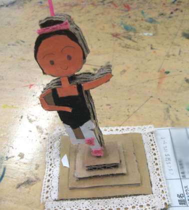 バレリーナの作品は、細かい部分を壊さないように丁寧に電動糸のこで切断し、足元を工夫して、クルクル回るようにつくられています。