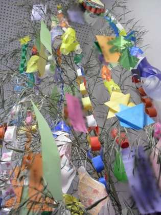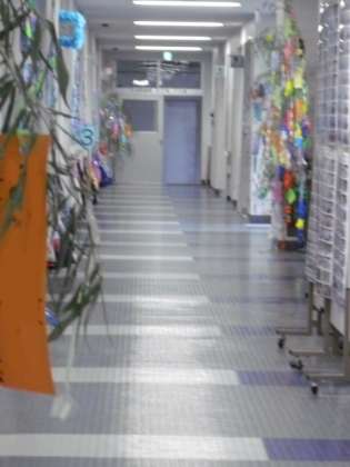 とてもきれいな七夕飾りが1・2年生の廊下を飾っています。