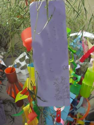 「○○になれますように。」というお願いがたくさんありました。みんなの夢が詰まっています。中には、「かぞくや ともだちが しあわせに くらせますように。」「やさしいことばを つかえるように」といったすてきなお願いごともありました。