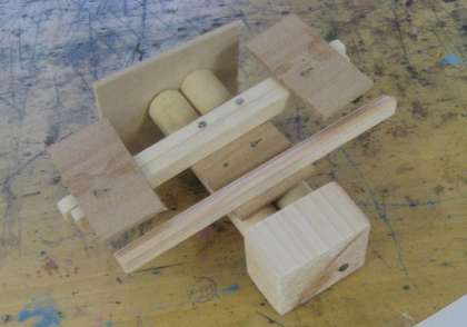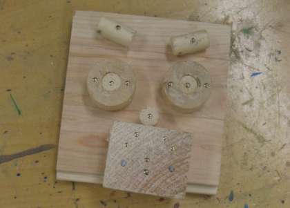 5年生は、いろいろな形をした木の材料を15個持たせて、その中から組み合わせ方を工夫して、作品をつくりました。