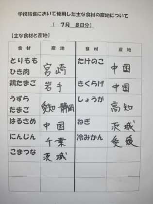 7/8 今日の給食