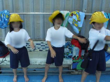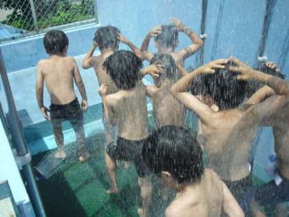 「今日は、天国のシャワーだ」という子どもたちのうれしそうな顔から、1年生にとって初めての検定が始まりました。