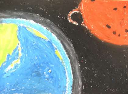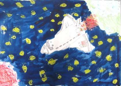 クレヨンでぼかしたり、動きを考えて塗ったり、絵具と組み合わせたり、ペンで描いたりと、いろいろ工夫しています。