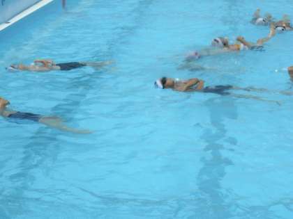 3年生は、今日の水泳の時間に、まず背浮きの練習をしました。呼吸が楽にできます。そして、ペットボトルを浮き代わりに使って長い時間浮く練習をしました。力を抜くと楽に浮いていられます。