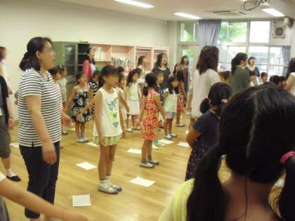 「声を遠くに投げるようにして」と教えていただくと子どもたちがすぐに反応していました。とても素晴らしいです。