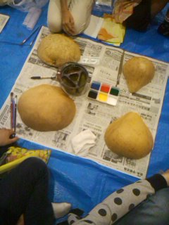 夕食後は、ふくべ細工です。芸術的な作品ができる予定です。