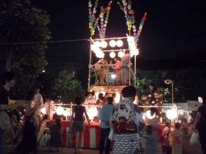 東深沢町会や商店街等主催の「東深沢納涼踊り」が開かれました。ひがしのお友達も、おうちの方と一緒に大勢来ていました。