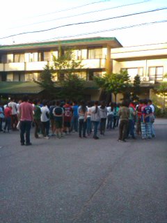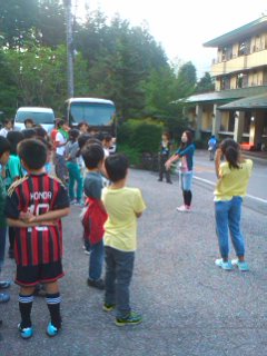 朝の会です。挨拶や準備体操をして、この後の行動を確認します。