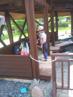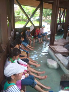 次は、湯元温泉です。足湯体験や源泉の見学をします。