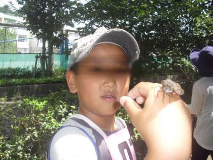 ワークショップに参加した3年生〜5年生の22名が、東深沢小学校の周りにいる生きものさがしをしました。生きものを多く見つけられそうな場所を知っている子もいて、互いに声をかけ合いながら虫さがしを楽しんでいました。校外に出たのは短時間でしたが、たくさんの虫と出会うことができました。