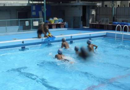 前半は女子がリードしていましたが、後半は男子が踏ん張り、同点となったところで時間切れ。お互いに拍手をして今日の水泳教室が終了しました。