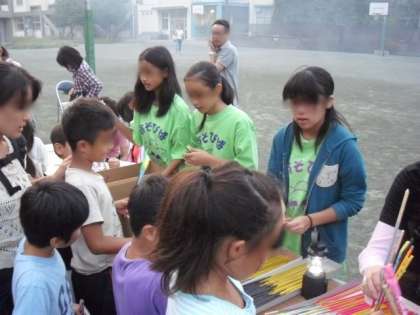 ボランティアの中学生の先輩たちも、陰で大活躍していました。みんなが花火を楽しめるように、手持ち花火を配ったり、ゴミを集めたりしました。小学生の中には、きっと、自分も中学生になったらやってみようと思った子がいると思います。