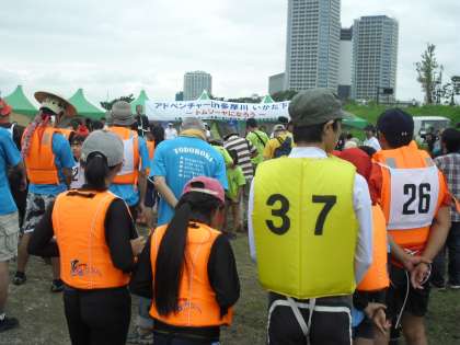 アドベンチャーin多摩川の開幕です。今年は、夏休み最後の日の開催となりましたが、小学校だけでも72艇、中学校なども合わせると、80艇の参加と大盛況でした。