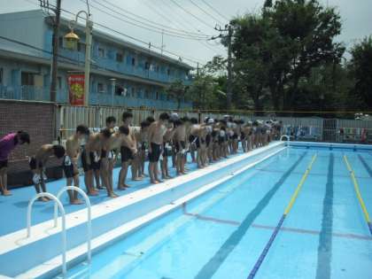 大きな怪我もなく、無事に記録会は終了し、今日で6年生最後の学校でのプールも終わりました。感謝の気持ちを込めて、挨拶をして最後を締めくくりました。