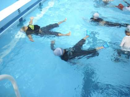 今年度最後の水泳の時間は、5年生でした。プール納めでは、代表のお友達が、来年に向けての抱負を言っていました。そして、着衣泳を体験しました。衣服を身に付けた状態での泳ぎにくさや、ペットボトルやレジ袋を使って長い時間浮いている体験をしました。水の事故も含め、自分の命を守るためにも危険を避ける力を高めることが大切です。