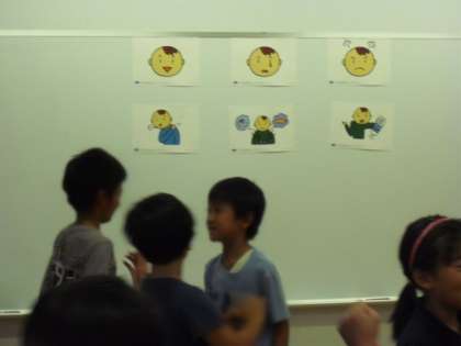 お友達とペアになり、ジャンケンをして質問する側や答える側を決めて、ゲーム感覚で練習をしました。視聴覚室に3年生のあいさつの声が響きました。