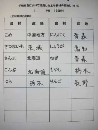 9/19 今日の給食
