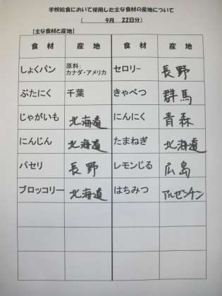 9/22 今日の給食
