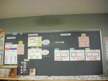 ポイントは、自分の書いた式を、テープ図を使ってお友達に説明できるかどうか?子ども対は隣の席のお友達に一生懸命自分の考えを説明していました。