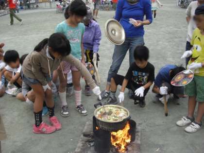 材料を火にかけると、手際良く片付けも始めていました。家でもお手伝いを頑張っているようです。
