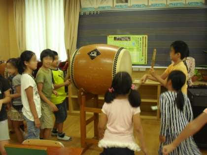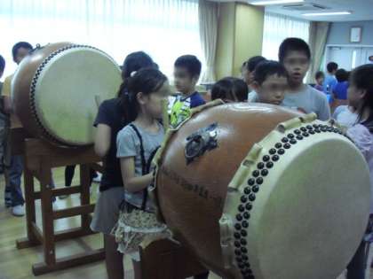 自分たちでつくった簡単なお囃子をリコーダーと、和太鼓で演奏しました。リコーダー一班、和太鼓2台二班に分かれ、班の中で、どんどん交代しながら演奏を続けていきます。