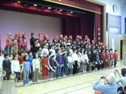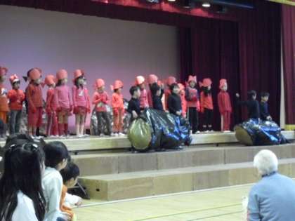 2年生は「スイミー」です。今日の1時間目に急きょ練習をして演じました。ブランクを感じさせない出来栄えでした。お客様から、「完成度が高いですね」と褒めていただき嬉しくなりました。