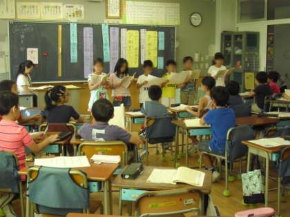 2年3組は算数(水のかさ)、4組は教科「日本語」(短歌)、3年1組は教科「日本語」