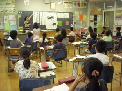 1年4組は生活(秋の遊び)、2年1組は国語(しゅ語とじゅつ語)、2年2組は国語(しゅ語とじゅつ語)