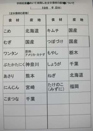 10/9 今日の給食