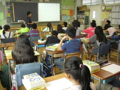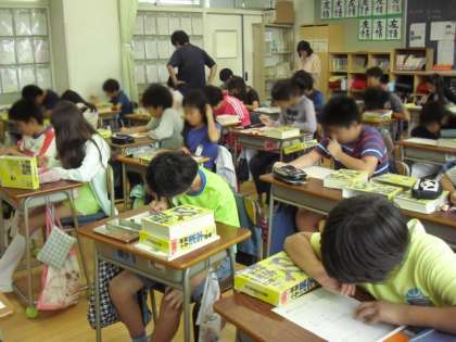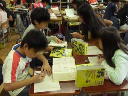 担任の先生が用意した漢字のプリントを基に学習を進めました。さすが6年生、漢字辞典も手際よく活用していました。そして、とても感心したのが3・4人のグループでの話し合いが滞ることなく進められていたことです。これまでの先生の指導の積み重ねを感じました。