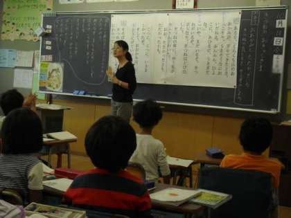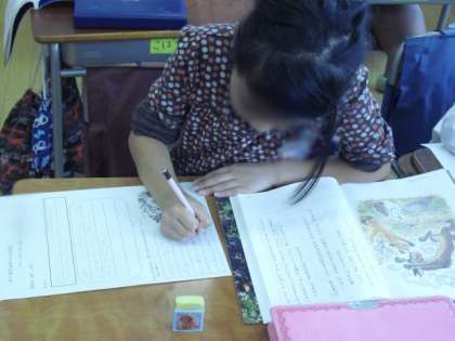 きつねの行動や様子、気持ちが表れている言葉や文に線を引きながら、想像していきました。子どもたちからは、論争が起きたほど、たくさんの意見が出されました。それは、担任の先生も子どもたちの意見を「良い考えだね」と認めているからです。子どもたちは、安心して発言することができます。ワークシートにも自分が想像したことをしっかりと書くことができました。熱心に学習に取り組む姿に感心してしまいました。